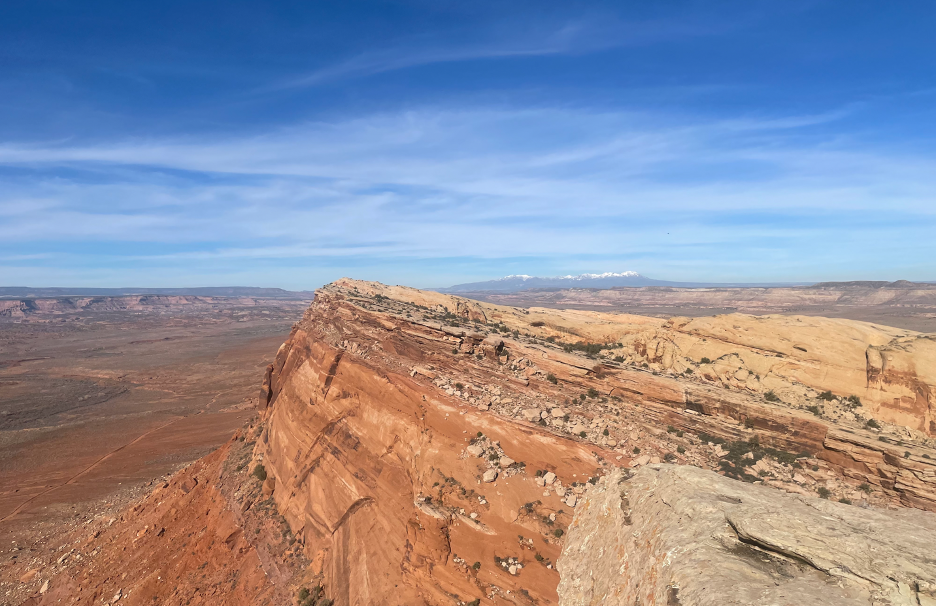 During the week of the Thanksgiving holiday, I had the opportunity to visit a remote part of southeastern Utah near the Bears Ears National Monument. A striking feature of this landscape is a long hogback called Comb Ridge, or Tséyik’áán in Navajo. The ridge is formed from layers of thick, hard sandstone that were bent upward during the building of the nearby Rocky Mountains. Its eastern side is sliced by steep canyons, their heads forming gaps along the crest of the ridge. The undulations from canyon to canyon vaguely resemble the teeth of a comb, hence the name. The western face forms a sheer cliff.